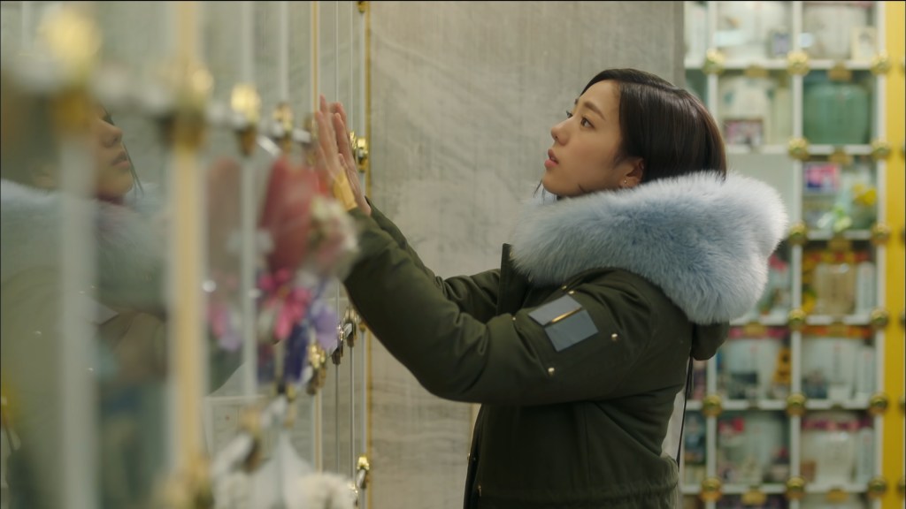 A côté de la comédie, il y a aussi des instants de mélancolie, de recueillement. Jouée ce rôle de robot lui pèse, d’autant plus qu’une attirance naît entre elle et son maître humain. C’est une scène souvent explorée dans les séries coréennes, les personnages se rendent au colombarium pour discuter et se confier avec leur proches. disparus. Ce sont souvent des moments émouvants.