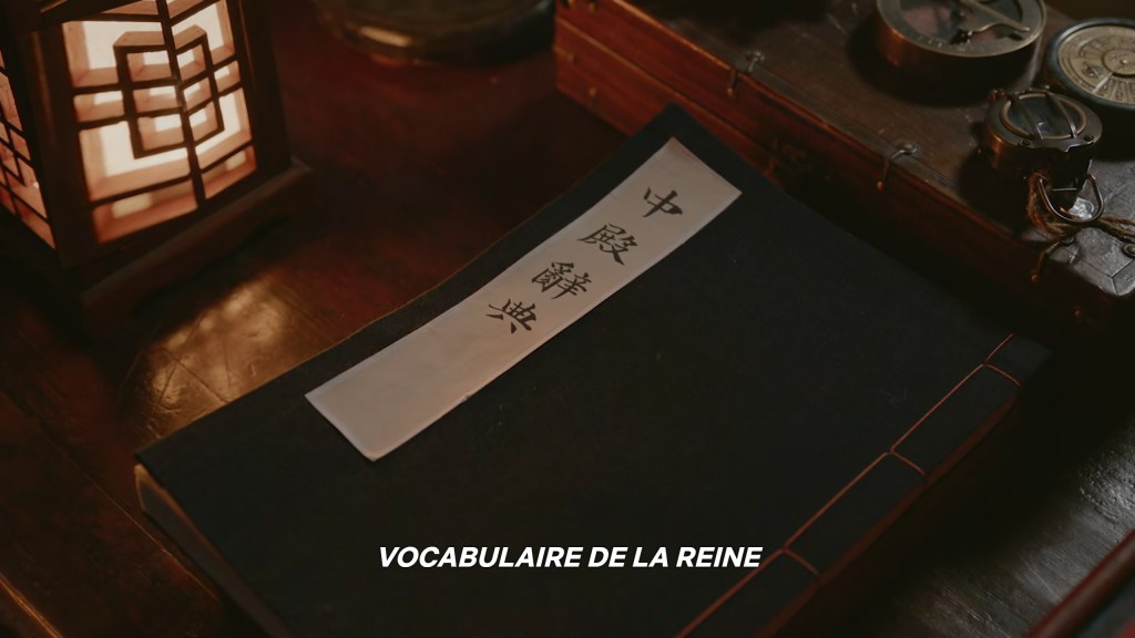 L’une des trouvailles de la série est le livre de vocabulaire de Kim So Yong que tient le roi. Sa jeune épouse pratique le coréen du XXIème siècle et a des expressions relatives à des événements ou objets qui n’existent pas au temps de Joseon.