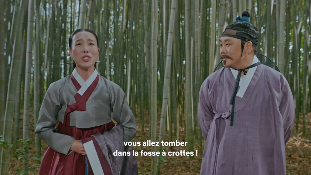 Le couple avec Cheol Jong fonctionne bien, même si son jeu à lui est plus classique dans le registre coréen, et la réussite comique du duo est justement liée à ces jeux en décalés, d’autant plus justifiés que 200 ans séparent leurs esprits.