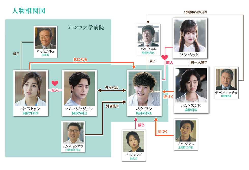 Enfant, Park Hoon ( Lee Jong-suk ) et son père Park Cheol, un chirurgien réputé ( Kim Sang-joong ) sont envoyés en Corée du Nord pour effectuer une opération à cœur ouvert sur Kim Ill Sung afin d’empêcher une Seconde Guerre de Corée. Après avoir été envoyés en Corée du Nord, Park Hoon et son père se voient refuser l’accès à la Corée du Sud . Il est révélé que Park Cheol poursuit l’hôpital universitaire de Myungwoo pour une grave affaire de faute professionnelle et que l’ami de Park Cheol, le Dr Park Choi, veut en assumer la responsabilité. Cependant, le directeur de l’hôpital Oh ne veut pas que l’affaire de faute professionnelle soit rendue publique, ce qui ruinerait la réputation de l’hôpital. En conséquence, il conspire avec Jang Seok-joo, un responsable de la sécurité nationale, pour que Park Cheol et son fils soient piégés en Corée du Nord. En Corée du Nord, Park Hoon est formé pour devenir médecin par son père qui est déjà un médecin célèbre. Il est devenu un génie de la chirurgie cardiothoracique après avoir suivi des études de médecine en Corée du Nord tout en travaillant comme contrebandier, vendant des DVD de K-pop sud-coréens. Là-bas, il est tombé profondément amoureux de Song Jae-hee (Jin Se-yeon). Après la mort de son père, il a essayé de fuir en Hongrie avec Jae-hee, mais a finalement perdu contact avec elle. Park Hoon a pu fuir seul en Corée du Sud.