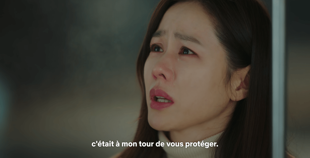 Dans une scène intense, Jeong-hyeok parvient à intercepter la fusillade. Alors que les balles pleuvent, il se précipite vers la voiture de Se-ri, met sa vie en danger et prend une balle pour elle. La scène est un moment clé dans la série, car elle montre à quel point Jeong-hyeok est prêt à tout pour protéger la femme qu’il aime.