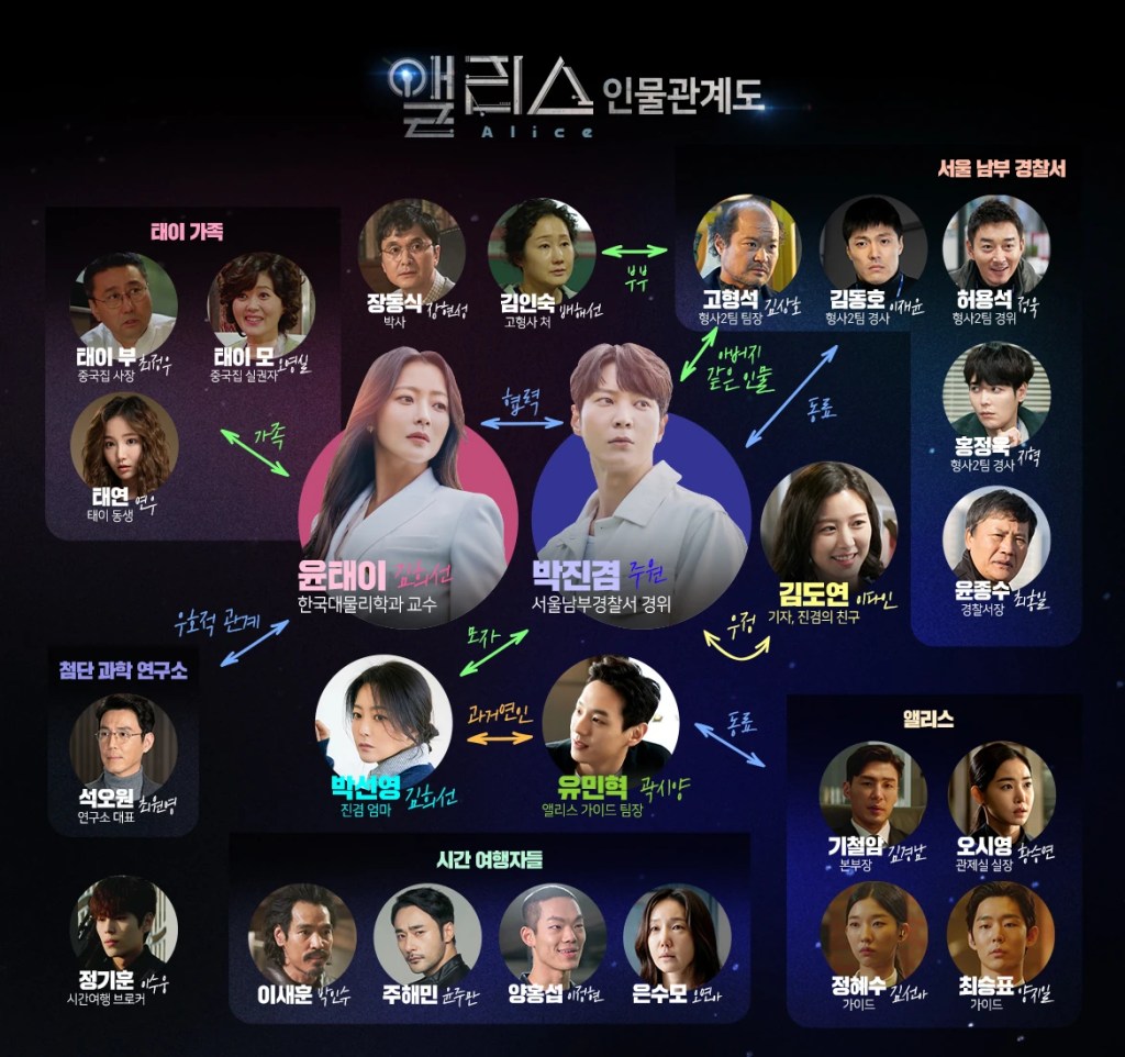 Alice est un drama de science-fiction et de mystère, où voyages dans le temps, relations humaines et quêtes de vérité s’entrelacent. Diffusée en 2020, la série met en vedette Joo Won dans le rôle de Park Jin-gyeom, un détective émotionnellement distant, et Kim Hee-sun dans celui de Yoon Tae-yi, une physicienne brillante qui bouleverse son existence.