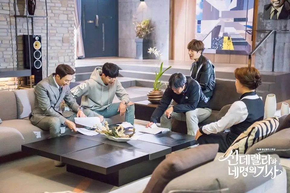 “Cinderella and the Four Knights” raconte l’histoire d’Eun Ha-won, une lycéenne brillante mais orpheline de mère qui rêve de poursuivre ses études à l’université tout en jonglant avec des emplois à temps partiel pour subvenir à ses besoins. Remarquée par le président du groupe Haneul lors d’un de ses jobs, parce qu’elle a du caractère et a remis à sa place un jeune homme trop entreprenant, Ha-won se retrouve à vivre dans un immense manoir appelé Sky House, résidence de trois jeunes et riches cousins, héritiers potentiels d’un puissant empire chaebol. Le président du groupe Haneul est leur grand-père et souhaite désigner son successeur parmi eux, mais les rivalités, les blessures du passé et l’hostilité entre ces cousins rendent la cohabitation difficile.