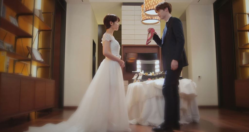 Dans une scène qui rappelle le conte de Cendrillon, Hyun-min invite Ha-won à une réception en lui offrant une paire de chaussures rouges et une tenue élégante, transformant son apparence en une véritable princesse moderne. La mise en scène joue sur les codes classiques du conte, avec une arrivée spectaculaire où tous les regards se tournent vers elle. Pourtant, ce moment féerique prend une tournure plus amère lorsque Hyun-min se montre indifférent après avoir utilisé Ha-won comme un simple moyen d’éloigner une prétendante. C’est ici que Ji-woon intervient, vexé de voir Ha-won ainsi manipulée, et l’entraîne hors de la salle de bal dans un moment de tension et de malaise. La caméra suit son regard blessé et son hésitation avant d’abandonner les souliers rouges, symbolisant son refus d’être une simple figurante dans le jeu des riches.