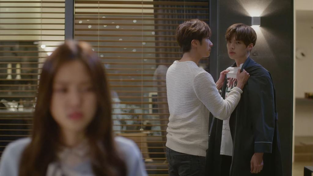 L’un des moments les plus intenses de la série survient lorsqu’une dispute éclate entre Ji-woon et Hyun-min au sujet de Ha-won. Hyun-min, qui a toujours prétendu être indifférent, commence à montrer des signes de jalousie, tandis que Ji-woon assume enfin ses sentiments. Le jeu des acteurs est particulièrement puissant ici, notamment Ahn Jae-hyun (Hyun-min), dont l’attitude habituellement désinvolte laisse place à une colère contenue. Cette confrontation met en évidence les rivalités et les blessures du passé qui les opposent, tout en scellant définitivement la dynamique amoureuse de la série.