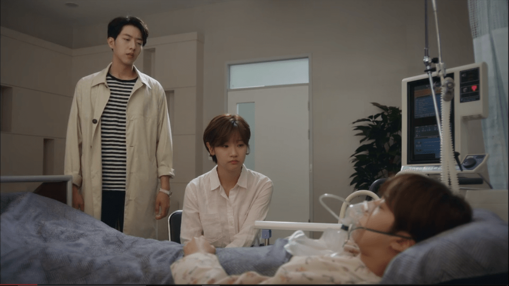 Après l’intervention et la mauvaise réaction de Ji-woon aux anesthésiques, Ha-won, reste à son chevet et s’inquiète profondément. Son amour pour lui transparaît dans cette scène malgré sa pudeur, et cette émotion sincère ne passe pas inaperçue aux yeux du président Kang, qui commence à la considérer différemment. C’est un moment de vulnérabilité intense, où Ha-won, d’ordinaire forte et indépendante, laisse entrevoir ses véritables sentiments, renforçant la profondeur de leur relation.