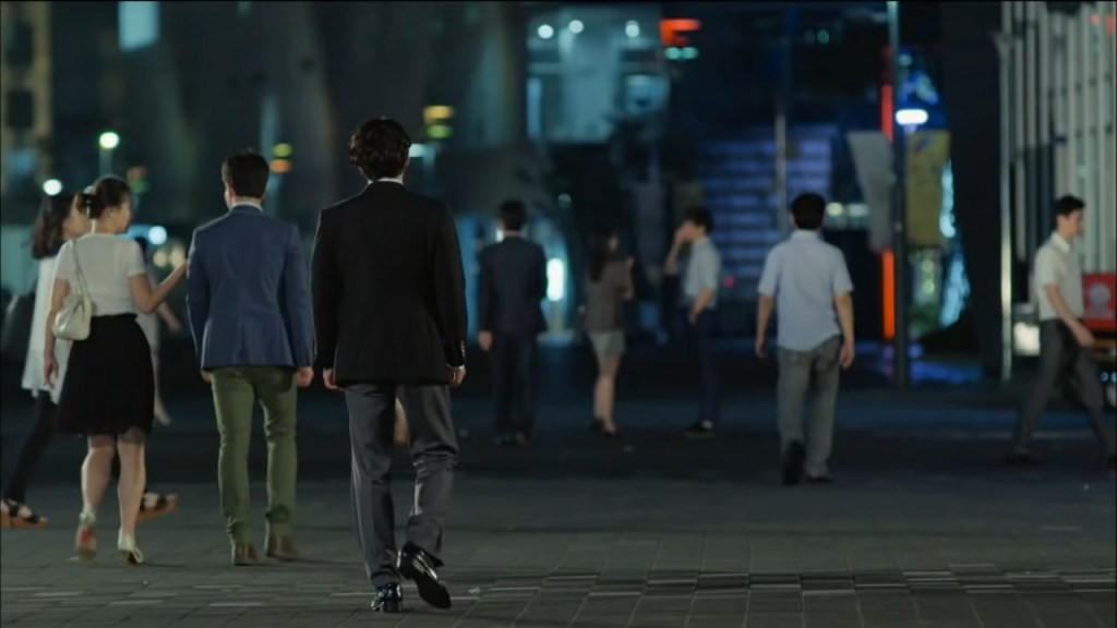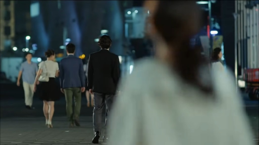 Elle le suit mécaniquement et s’engage sur la route, perdue dans sa douleur. Pendant ce temps, Lee Gun s’éloigne, mais le montage le ramène à elle de manière subtile et puissante.