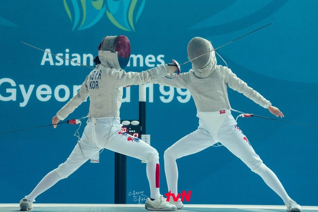 Dans la culture sportive sud-coréenne, l’escrime est souvent associée à une intense compétition et à des sacrifices personnels. Comme on le voit dans Twenty-Five Twenty-One, les athlètes doivent concilier des entraînements exténuants avec une pression immense pour performer, souvent dans l’espoir d’obtenir des bourses scolaires, un statut social plus élevé ou encore d’aider financièrement leur famille.