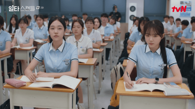 Le second groupe est celui des élèves de la classe de Hae-yi, qui reflète la pression et les inégalités du système scolaire. Ce groupe est divisé entre ceux issus de familles aisées, bénéficiant d’un soutien académique intense, et ceux, comme Hae-yi, qui doivent se battre pour prouver leur valeur. Hae-yi, tout en étant studieuse et discrète, attire des jalousies et devient malgré elle la cible d’injustices. Lee Sun-jae, son ami proche, et Bang Su-a, qui oscille entre rivalité et détresse émotionnelle, font partie de ce microcosme où la réussite scolaire définit le statut social.