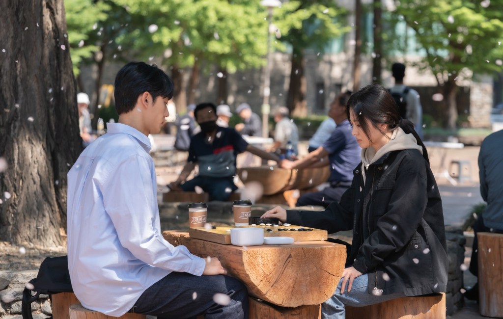 C’est d’ailleurs en voulant apprendre à jouer à ce jeu qu’elle rencontre Joo Yeo-jeong, son futur complice et, à bien des égards, son âme sœur. Lui aussi est un joueur. Mais contrairement à Ha Do-yeong, il comprend très vite que Dong-eun ne joue pas pour gagner une partie : elle joue sa vie. Il ne l’interroge pas frontalement, il l’observe, il devine ses blessures, et il choisit de se placer à ses côtés. Le baduk devient alors un langage entre eux deux, fait d’écoute, de respect, et d’un lien silencieux mais profond. Là où tous les autres personnages parlent trop, mentent, fuient, eux jouent.