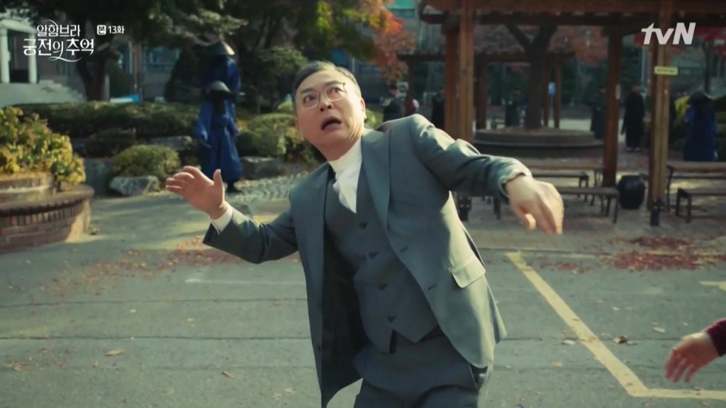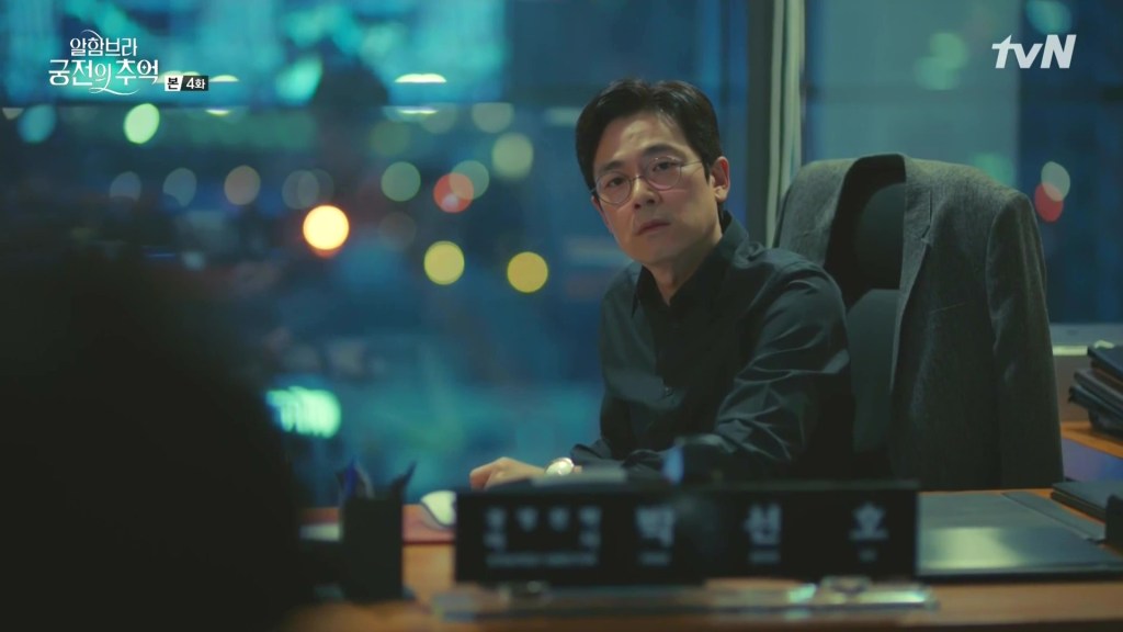Jusque-là, Cha Byung-jun considère Jin-woo comme un homme affaibli, mentalement dérangé, potentiellement meurtrier. Il le poursuit juridiquement et veut reprendre le contrôle du jeu en pensant pouvoir gérer la situation à sa manière, c’est-à-dire par les règles du monde réel, de l’entreprise, du pouvoir. Mais tout bascule lorsqu’il se retrouve face à l’avatar de son propre fils dans le jeu. Là, sans médiation, sans interprétation, il est confronté à une matérialisation impossible : Hyung-seok est là, debout, armé, et le vise — comme il a poursuivi Jin-woo auparavant. Ce n’est pas un rêve, ce n’est pas une métaphore, c’est le code devenu chair, une mémoire numérique devenue menace.