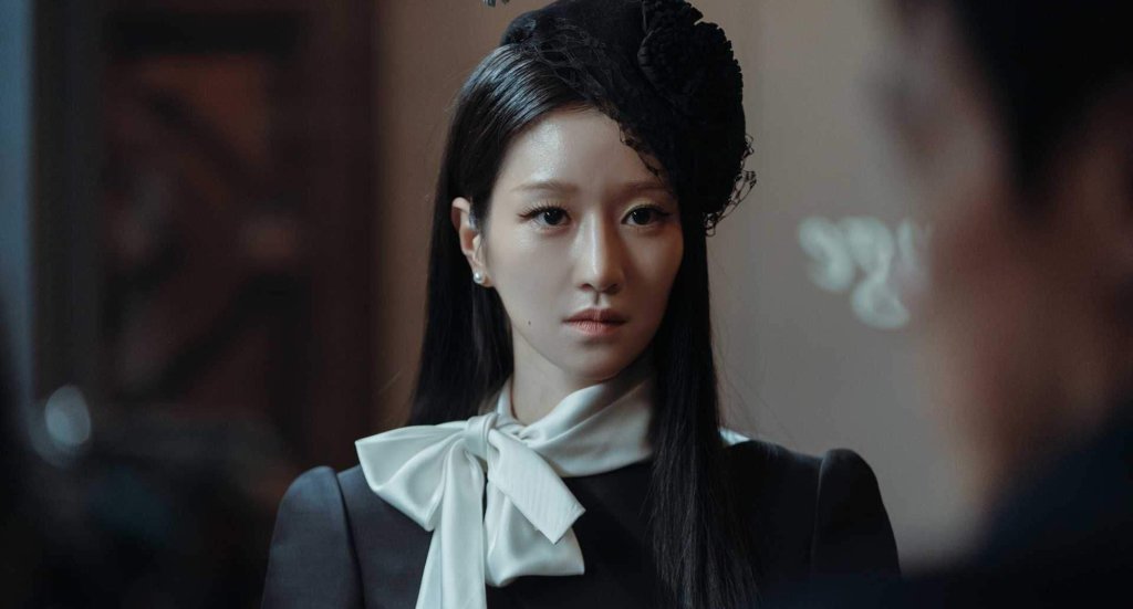 le jeu de Seo Yea-ji, à la fois spectral, magnétique et d’une intensité presque irréelle. Elle incarne Lee Ra-el comme une apparition, une figure presque mythologique, entre la dame blanche et la mante religieuse, portée par une grâce glacée, toujours en suspension entre l’amour et la destruction. Sa voix posée, son regard figé entre douleur et résolution, sa lenteur presque chorégraphiée, contribuent à faire d’elle un personnage qui semble habiter un autre espace-temps, celui du deuil, de la mémoire et du calcul. Et pourtant, dans ce monde qu’elle manipule à sa guise, une faille s’ouvre peu à peu : l’attraction sincère qu’elle ressent pour Kang Yoon-gyeom, qui lui-même se détache de son monde corrompu à mesure qu’il tombe amoureux.