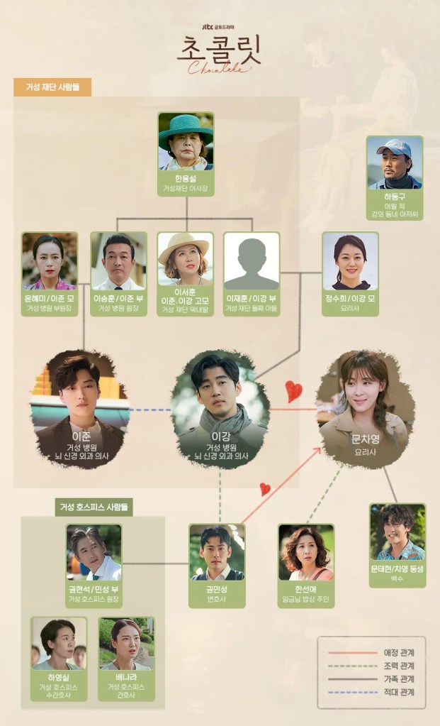 Autour d’eux gravitent des romances secondaires qui enrichissent le tableau émotionnel de Chocolate. Parmi elles, celle du directeur de l’hospice et de son ex-femme, atteinte d’Alzheimer, bouleverse par sa sobriété et sa tendresse. Lui, rongé par la culpabilité, reste finalement auprès d’elle malgré leur séparation, l’accompagnant dans la lente dissolution de sa mémoire. Le spectateur assiste à l’effacement d’un amour ancien et à sa renaissance sous une autre forme, plus pure, faite de patience et de fidélité silencieuse. Cette intrigue parallèle éclaire le propos général du drama : aimer, c’est aussi savoir laisser partir.