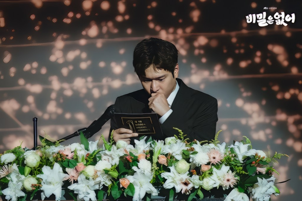 Cette trajectoire trouve un point culminant dans l’une des scènes les plus fortes de la série, lorsque tout menace de s’effondrer à cause des accusations d’une candidate de télé-réalité, rejetée par Ki-baek, qui affirme que l’émission a été truquée. Le scandale médiatique qui en découle oblige l’agent de Ki-baek à organiser une conférence de presse pour contrôler la narration. Tout est prêt pour une déclaration froide, maîtrisée, où il doit nier toute relation avec Woo-ju. Mais face aux journalistes, seul, exposé, Ki-baek vacille. Il tente de réciter un texte qui n’est pas le sien, bafouille, se perd, incapable de mentir avec conviction. Ce moment suspendu est déjà en soi révélateur de son évolution, lui qui ne parvient plus à rentrer dans le moule.